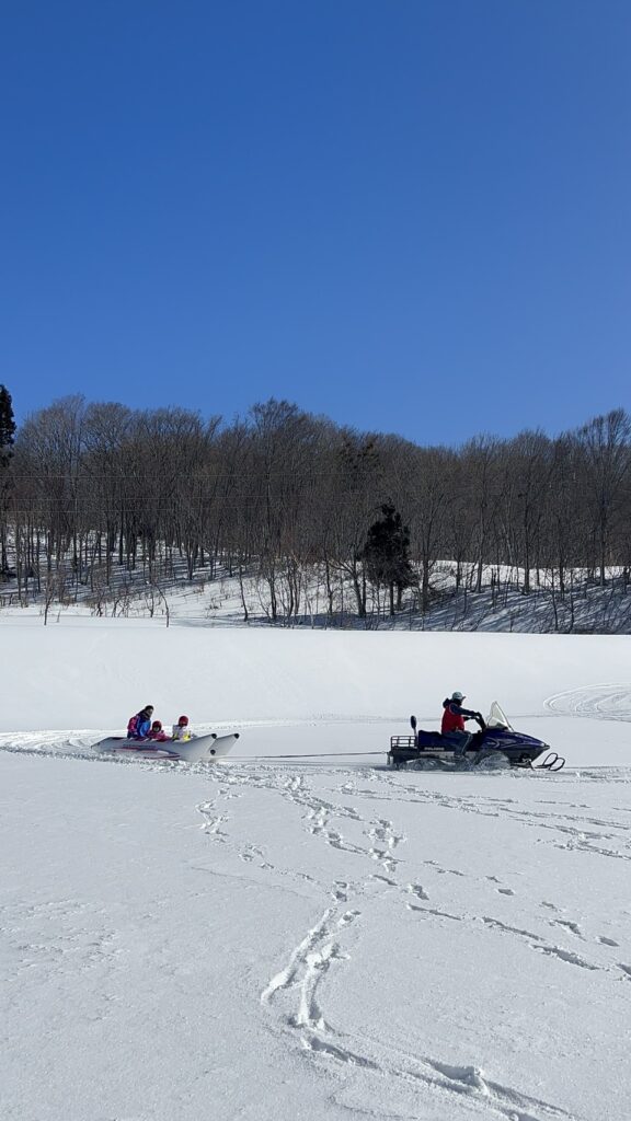 スノーランドでは、ソリ滑りやチュービング、雪上バナナボートなどなど